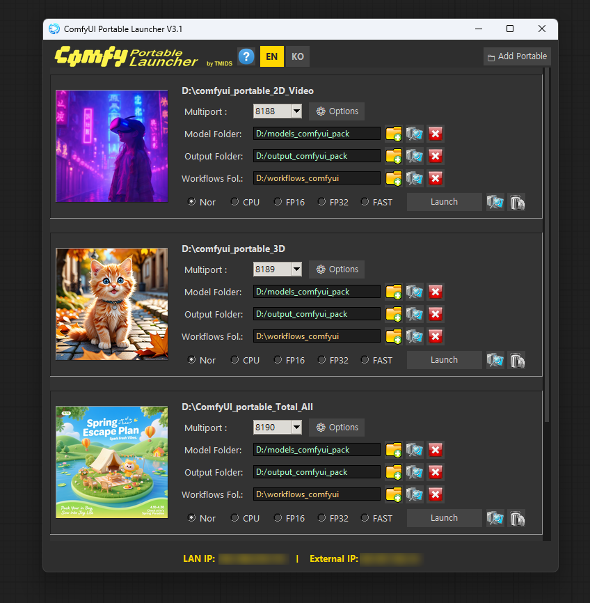 Comfy_launcher.batλ£κΈ° (Copy into each portable folder) - λ°μ²μμ [π ν¬ν°λΈ μΆκ° / Add Portable] ν΄λ¦ (Click [Add Portable])